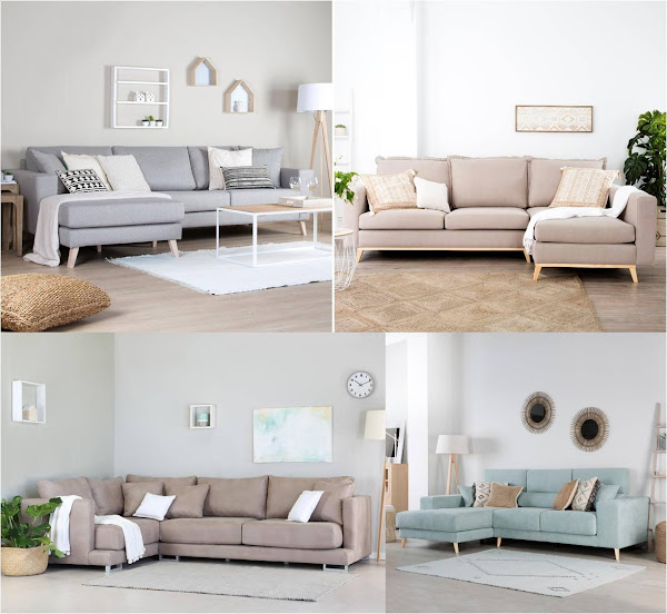 6. Diseño y estética: rectangulares, en esquina, modulares, redondeados o triangulares, adecuados al espacio, con acabados de patas y estructuras en materiales diversos, y de las tapicerías en tonos infinitos.