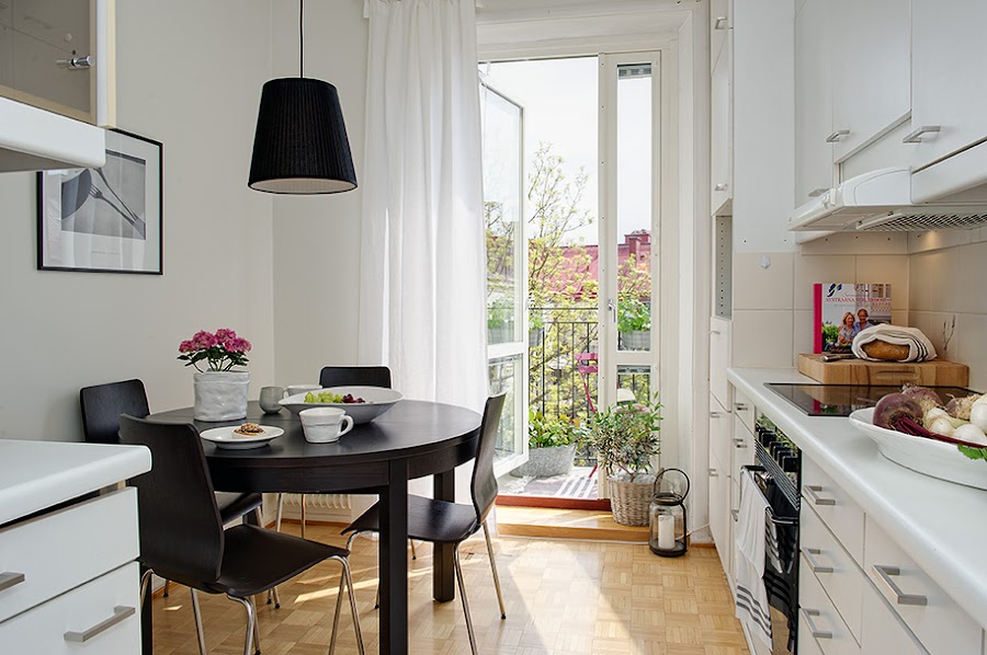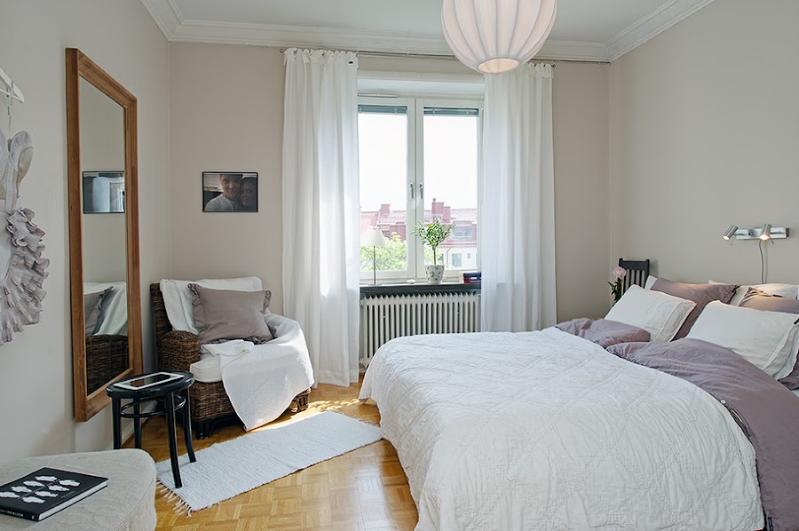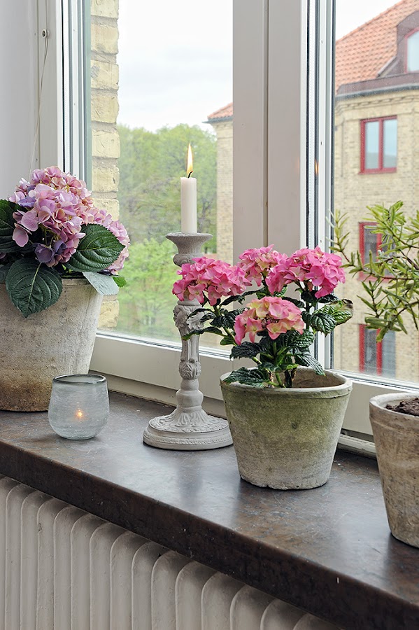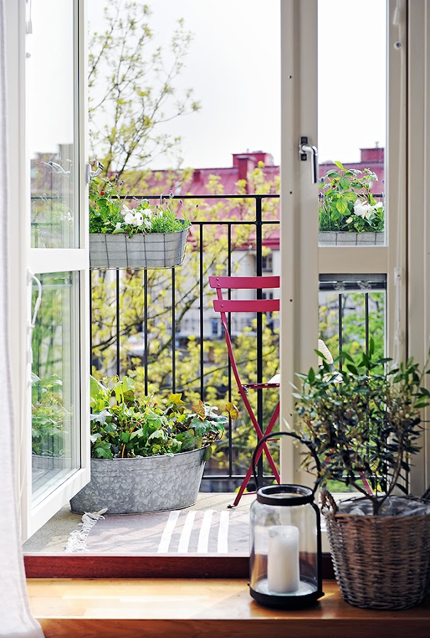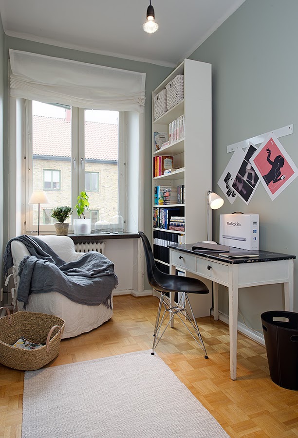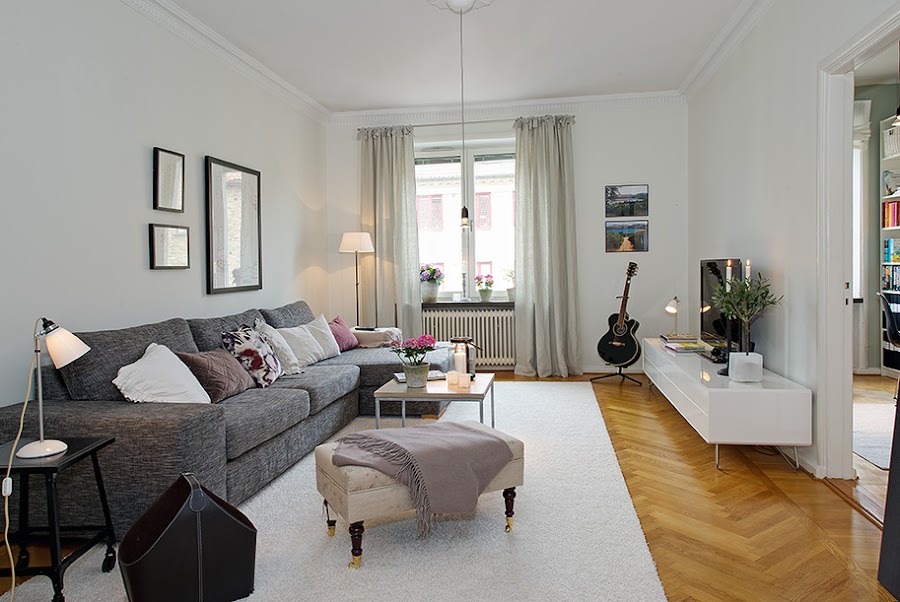 Volvemos a ver una guitarra en el salón, al final haré un post de GUITARRAS EN PISOS NÓRDICOS .... pero yo me quedo con su balcón primaveral y todos sus detalles florales en rosa, casi la única nota que discurre por las estancias de este piso.
