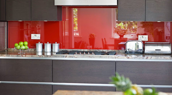 Como se ve en éstas bonitas cocinas, hay muchas ideas para proteger la pared con vidrio de una manera decorativa y duradera.