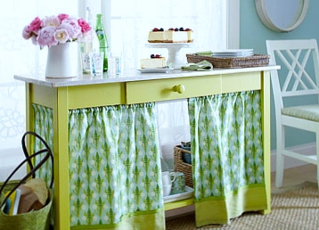 3. Utiliza la barra para ocultar, con una pequeña cortina o falda, el bajo de una mesa o el espacio entre muebles,.. Así, aunque dentro esté desordenado, no se verá.