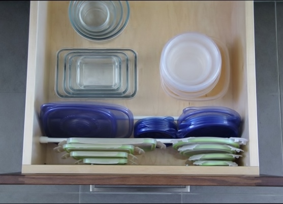 2. Puedes, también, colocar alguna barra dentro de un cajón de la cocina para las tapas de los táperes o pequeñas tapas de cacerolas o sartenes.