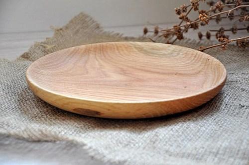 Una bandeja redonda de madera