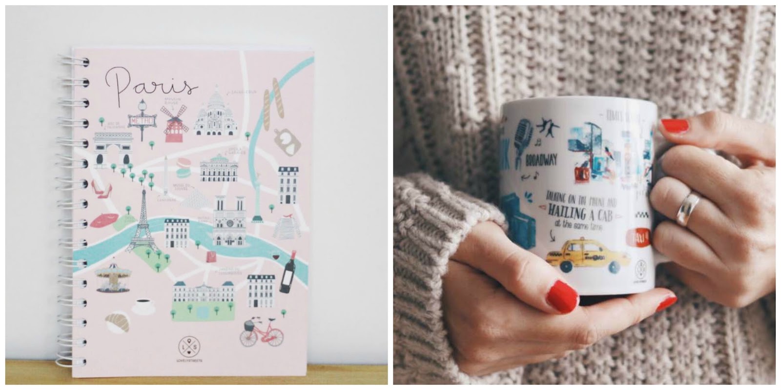 LOVELY STREETS: Es la linea viajera de Mr Wonderful. Tiene productos ideales en su tienda, y las personas que están detrás de esa marca son igual de simpáticas que sus productos. Ya sabes que a nosotras nos encanta viajar, a través de las fotos, en persona, o con esta taza y libreta molona. ¿Viajamos? Solo te falta, elegir destino.