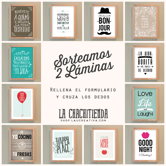 Las respuestas de nombre, mail y qué dos láminas de La Chachitienda elegiréis si os toca el sorteo, son obligatorias. La última pregunta es para poder mejorar el contenido y enseñaros cosas que os gusten.