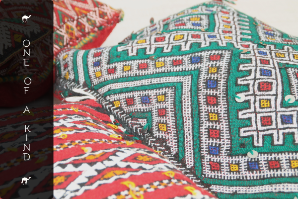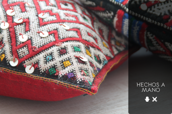 Hemos caído rendidos totalmente ante el encanto de los kilims bereberes, inundados por la magia de sus colores y los dibujos tan variados que hacen que se trate de piezas especiales y únicas. Todos ellos son elaborados de forma artesanal por las mujeres de las tribus marroquíes del medio atlas, también llamados Amazigh o Imazighen "hombres libres". Hay que tener en cuenta que se trata de piezas únicas, ya que no hay dos cojines tejidos de la misma manera, puesto que las mujeres que los elaboran transmiten a través de su forma de tejer sus vivencias, creencias, su forma de vida e incluso sus gustos y sueños. Los miembros de estas tribus pueden llegar a reconocer a la familia que ha realizado un determinado cojín solo con ver sus colores y motivos.