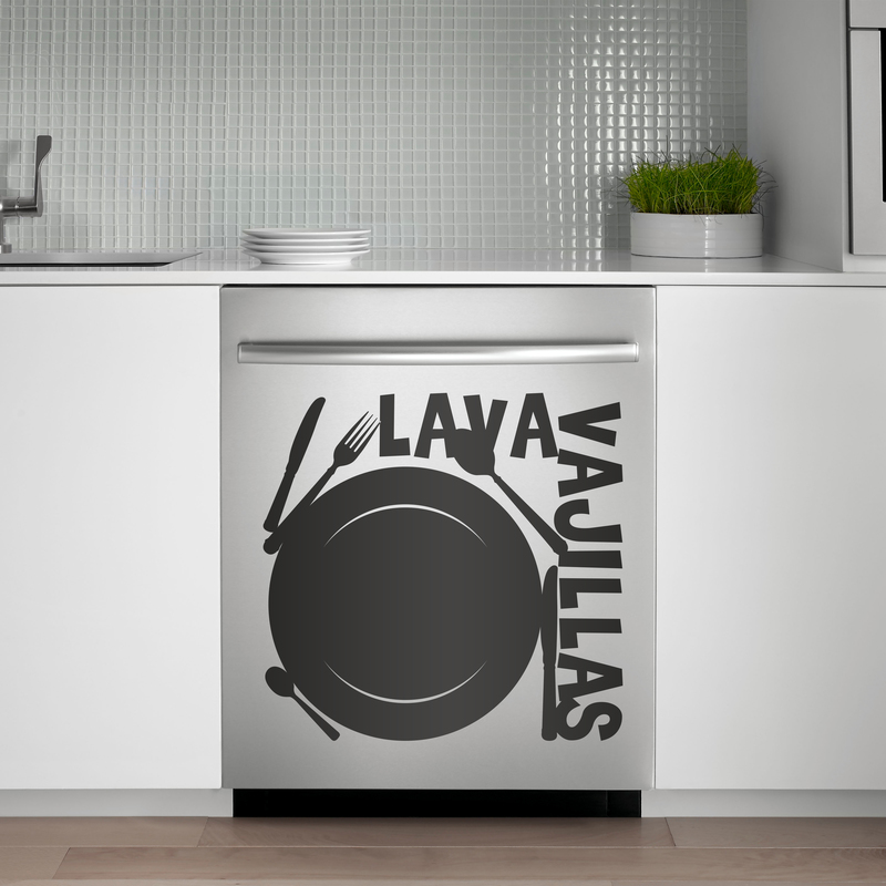 Para la cocina tiene infinidad de vinilos, para la nevera, lavadora... Éste del lavavajillas me ha hecho mucha gracia,