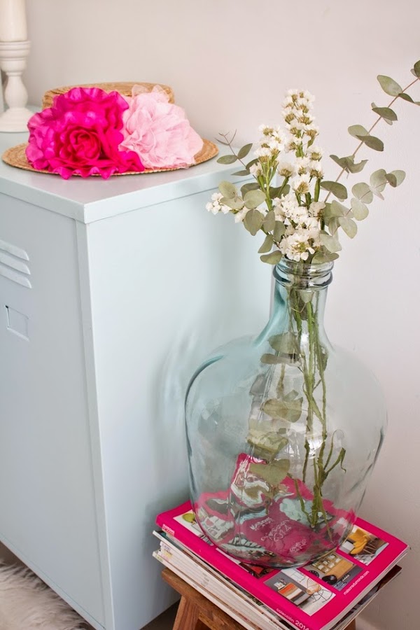 La decoración no fue fácil, acostumbrada al blanco cualquier cosa me parecia o poco o mucho, así que después de unos consejos con María Calcetines de darle color, me acordé del canotier que me regalo Mª Carmen Hernan y fue el toque perfecto para dar la bienvenida a la primera ¿no os parece?