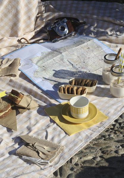 El amor es un sentimiento muy especial entre dos personas o entre tres, cuatro o incluso más. No es de color de rosa, ni rojo, ni tiene corazones o flores por todos lados... El amor es una mirada, un momento mágico, un beso o simplemente un detalle especial. Así que eso es lo que hemos querido transmitir. Nos hemos basado en colores neutros y hemos buscado introducir elementos muy especiales que nos llevan a un recuerdo pasado. Para mí, eso es mucho más romántico. Y cómo no, que sería un picnic sin una buena comida! En éste caso unas galletas diferentes de pistachos y arándanos (podéis descargar la receta aquí), unos sandwich al más puro estilo alemán y algo calentito para beber.