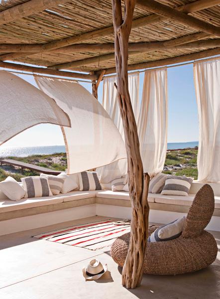 Espacios abiertos, blancura impecable, maderas naturales, mimbre, techos altos y exteriores que no tienen precio, con el sonido del mar de fondo...