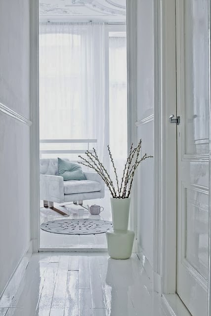Hoy vamos a dedicar la entrada a los ambientes donde el blanco, es el color predominante. Según he podido leer, cuando el blanco aparece en los sueños, es símbolo de que otra vez se reanuda el camino pero con nuevas metas y expectativas y desde luego con más sabiduría, es como asumir nuevas responsabilidades proyectos con ilusiones renovadas.