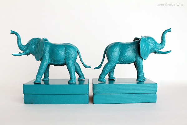 1. Pinta con aerosol las piezas de madera y los elefantes (deja secar entre capas).