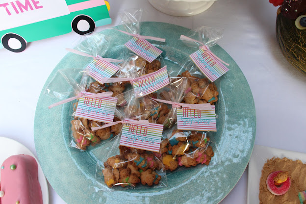 En Tiger compré el marco de fotos en forma de furgoneta surfera que decoró la mesa y también compré unos carteles ideales con nuestra temática de Summer party