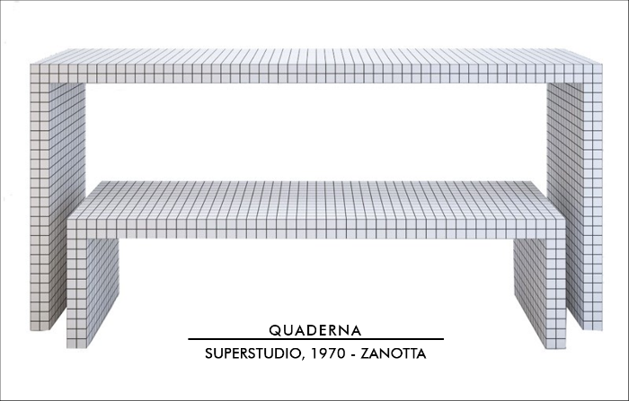 SUPERSTUDIO fue uno de los grupos fundadores del movimiento Antidiseño, corriente arquitectónica radical que se desarrolló básicamente en Italia e Inglaterra durante las décadas de los 60s y 70s. Sus cinco integrantes, Adolfo Natalini, Cristiano Toraldo, Piero Frasinelli y Alessandro y Roberto Magris se oponían a los fundamentos de la cultura de consumo y a los principios de la arquitectura moderna racionalista, cuya funcionalidad y estética ponían en tela de juicio.