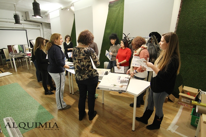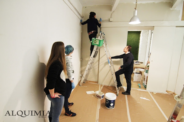 Ignasi y Manel fueron unos profesores increíbles que nos enseñaron todos los pasos que hay que seguir para que el papel quede colocado de manera profesional. Hablamos de las nuevas tendencias y sobre todo, de los diferentes tipos de papeles que hay y las diferentes opciones que ofrece cada uno. Todas pudimos participar en la decoración de esa pequeña sala colocando papel ya que no hay nada mejor para aprender que poder practicar y más teniendo a los chicos de Saint Honoré al lado (por cierto, unos chicos majísimos con los que también nos reímos muchísimo). A parte, también pudimos hablar con Antonio, responsable de Nerpel, que nos enseño todo lo referente en equipos de protección para mantener la casa siempre limpia cuando realicemos obras o pintemos.