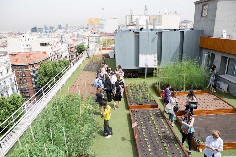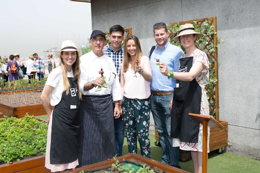 Continuamos la mañana con una visita a la azotea del Hotel Wellington de Madrid, donde nos esperaba el Chef del hotel, Luis Lebrero, para explicarnos de primera mano cómo habían llegado a tener, el que hasta el momento es, el huerto urbano más grande del mundo y de que forma incorporan esos productos en los platos que tienen en la carta del restaurante.