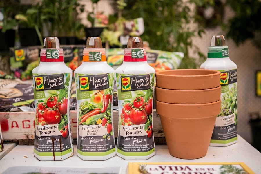 Los productos básicos que utilizamos fueron substrato y abono, además, cada una de nuestras macetas era diferente así que podíamos escoger entre fertilizantes para árboles frutales, plantas aromáticas o tomates, dependiendo de nuestra elección.