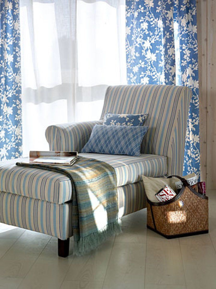 El repertorio Azules de la firma textil apuesta de forma decidida por las rayas. Líneas verticales y horizontales que se entrecruzan para confortarte durante los atardeceres de verano. ¿Te imaginas disfrutando de tu afición a la lectura acomodado en el chaise longue Villamanrique? Sólo tienes que proponértelo, ya que la tela Zagrilla Aguamarina (precio: 22,40 €/m) será la que se encargue del resto.