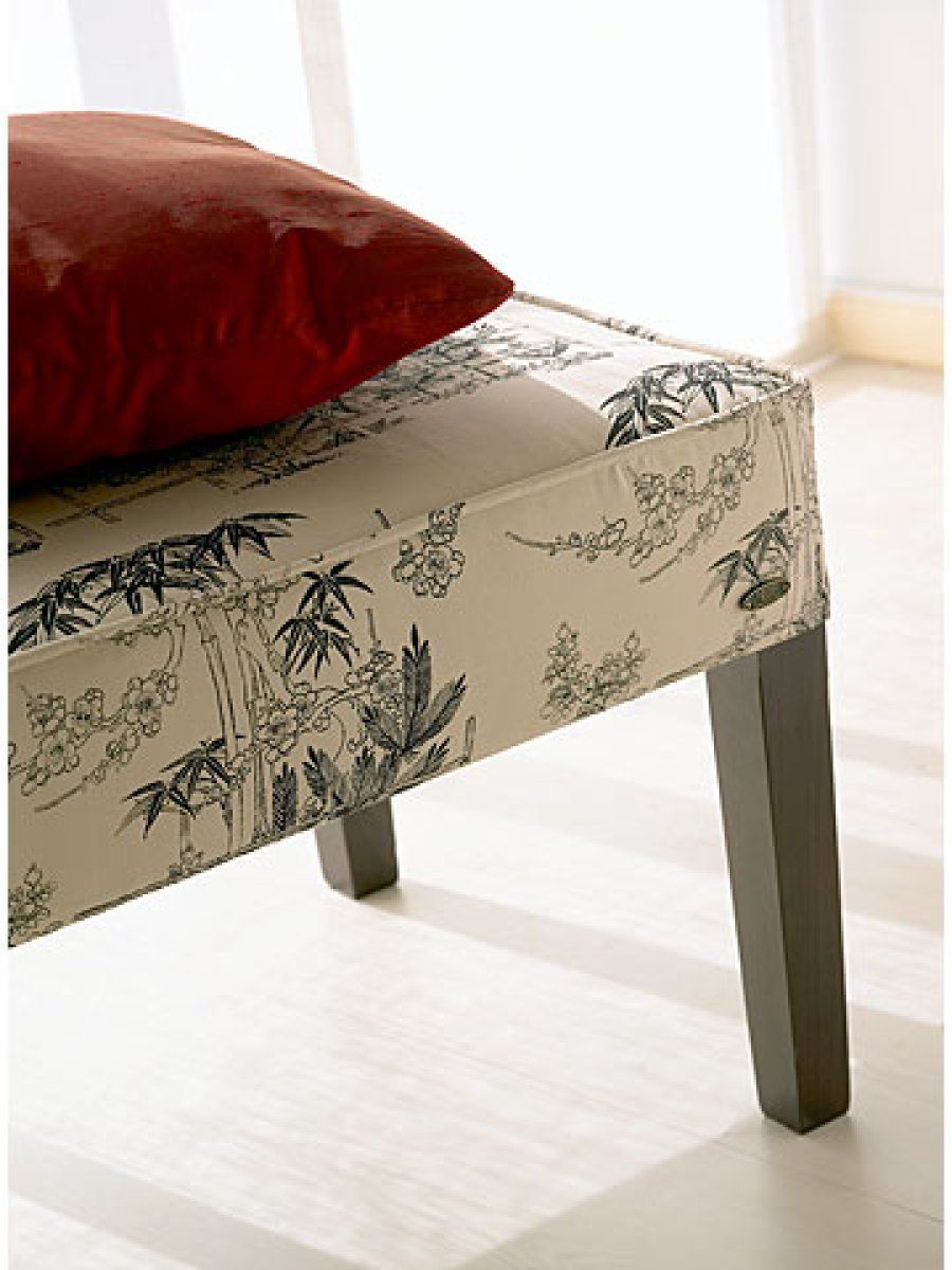 No te resistas al influjo de la corriente oriental. En esta foto, contemplamos un detalle de la elegante banqueta Molina. Ésta se viste con la tela Haiku Antracita (precio: 53,50 €/m), un tejido que pertenece también a la colección Naturales y que está confeccionado en 100% algodón. La armonía de la filosofía Zen llega hasta ti, así que no dudes en hacerle un hueco en alguna de las estancias de tu hogar.