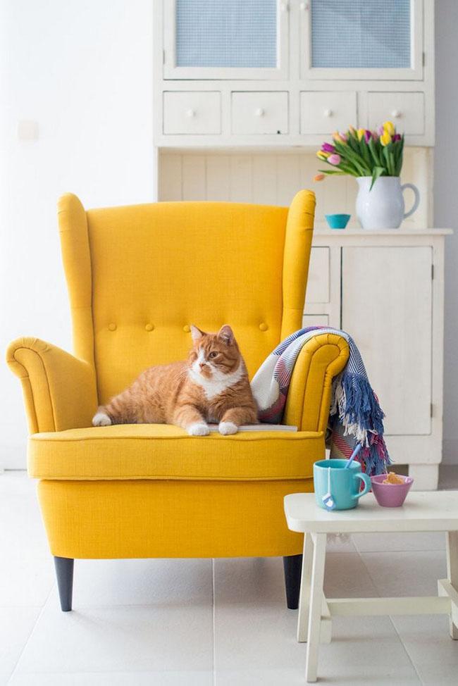 Fuente: Home Inspiration Ideas En lo que se refiere al universo del color en materia de tapicerías para sillas y butacas, conviven diferentes tendencias. Si bien los tonos empolvados y más tenues siguen triunfando, también lo harán en 2019 los colores atrevidos. Desde un rojo pasión hasta el amarillo más intenso. También el azulón, el verde esmeralda o el naranja vivo.