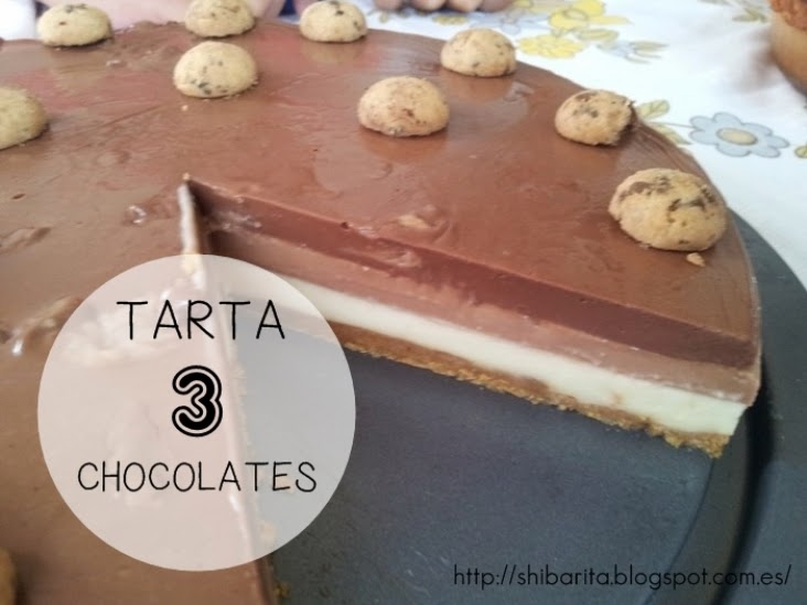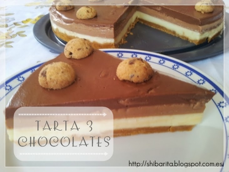 Lo mío con los dulces es un tema aparte, si por mi fuera comería a diario (y más de una ración), pero como una hace voluntad en cuidarse, intento deleitarme sólo con estos dulces "potentes" en ocasiones especiales tipo cumpleaños, una comida en familia, etc. Esta vez fue una comida en familia en la que hicimos dos tartas, una era la de queso que podéis verla aquí, y otra esta Tarta tres Chocolates hecha con Thermomix. Siento la mala calidad de las fotos, ya que igual que con la otra tarta, no llevaba la cámara así que tuve que hacerlas con el móvil.