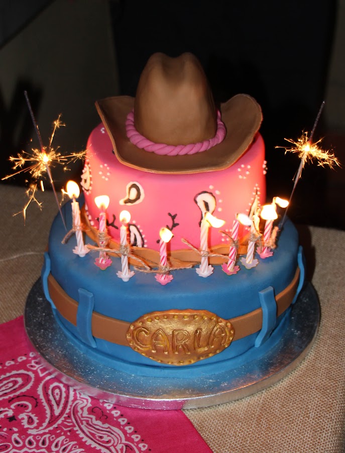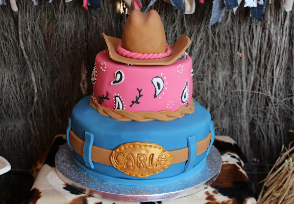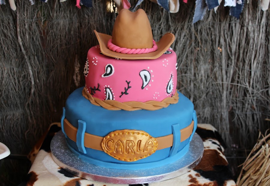 La tarta era de dos pisos con un topper de sombrero vaquero