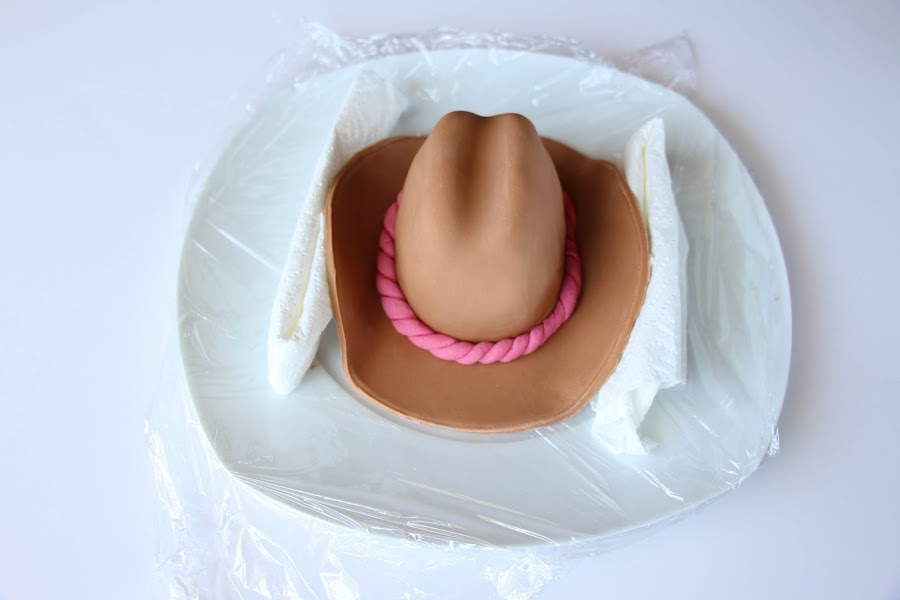Y arriba de la trata un sombrero vaquero hecho con fondant mezclado con CMC, y ahora viene mi "secretillo"