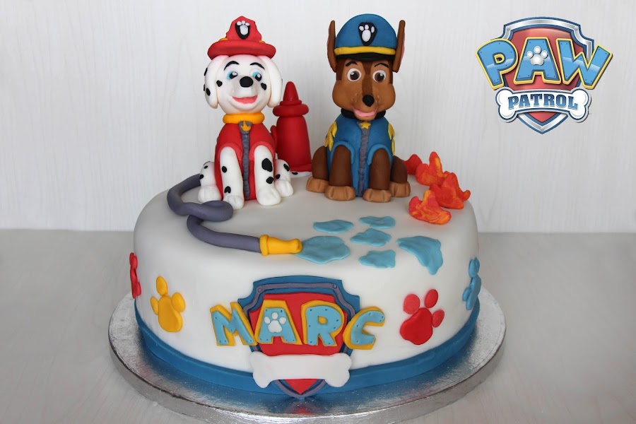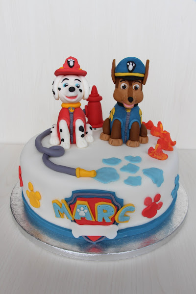 Ya es el cuarto año que le hago la tarta, primero fue de Mike el caballero, después de Tom y Jerry, el año pasado de los Minions y este año de la Patrulla Canina. Me hace mucha ilusión hacérsela por que lo quiero un montón, y espero que cuando sea mayor y mire las fotos de sus cumpleaños, le haga gracia que su tía (o sea yo) le haya hecho todas estas tartas con tanto cariño.