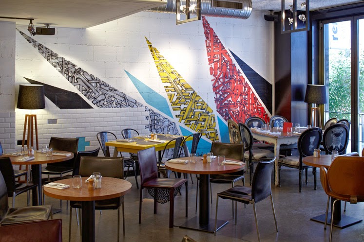 Renoma Café Gallery . Esta cafetería está inspirada en el Streat Art, su mobiliario ecléctico, puedes encontrar desde un envejecido sillón Chester de cuero a unas butacas de estilo Pop Art y sin dejarnos las sillas y mesas de estilo industrial, es un espectáculo que te seduce mientras te tomas un café y desayunas en su buffet.