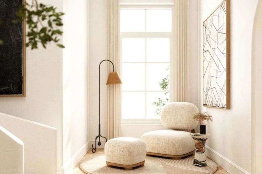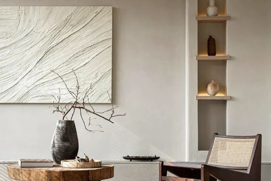 Al decorar el estilo Japandi, los toques de colores brillantes generalmente se mantienen al mínimo.