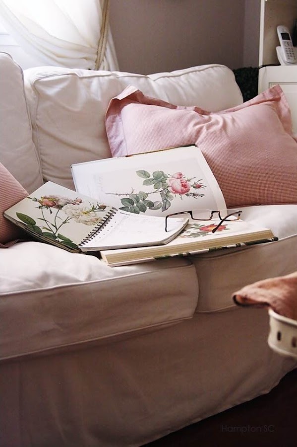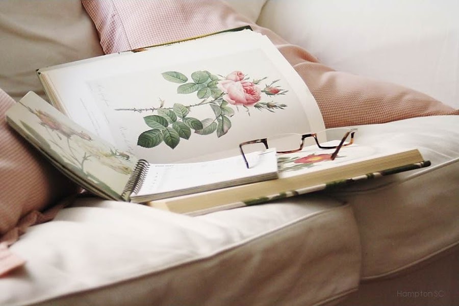 y disfrutando del libro The Roses de Pierre-Joseph Redouté.