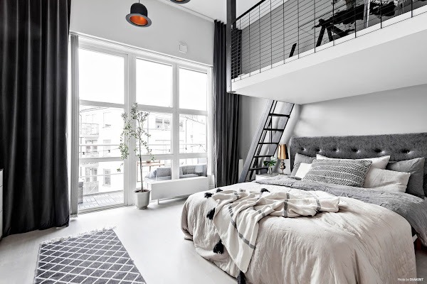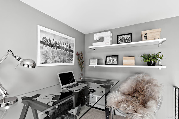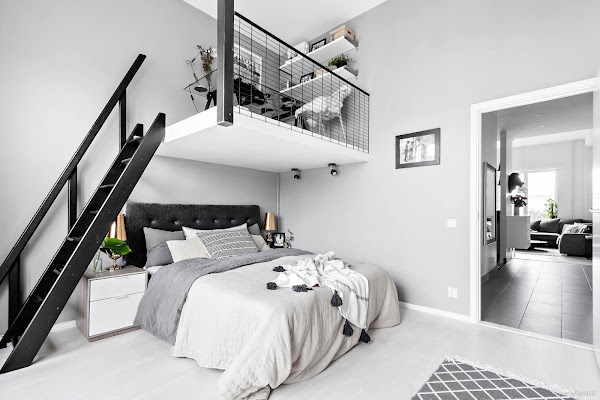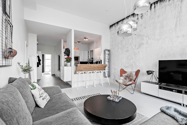 La parte de la cocina podría ser perfectamente la otra habitación que tenemos y que creo que nunca os he enseñado. (actualmente es un mini-gimnasio no nórdico!!), así que me ha dado la idea por si alguna vez nos decidimos a hacer la cocina. Me encanta la idea del concepto abierto así que esta la he visto perfecta.