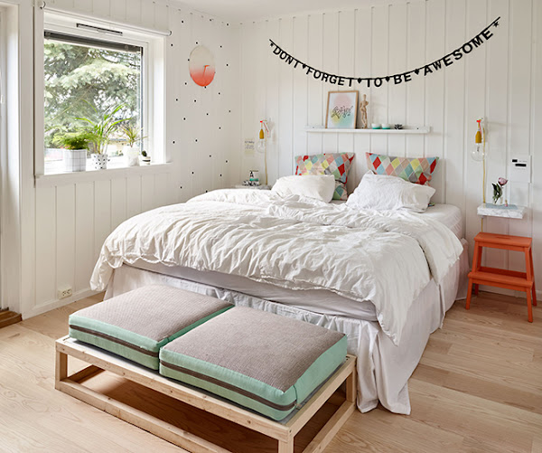 Como siempre vuelvo a la carga con una casa real esta en particular es muy bonita, muy escandi y muy práctica, para coger ideas sin parar y lo mejor espacios reales y mucho color pastel, con un blanco de pared de fondo, guirnaldas de luz y la famosa word banner negra en alguna de sus estancias.