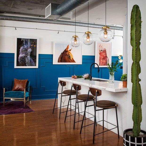 Los techos y paredes de hormigón son algo mas que una mezcla perfecta para espacios industriales o minimalistas, si no que como vemos aquí puede ser perfecto para destacar piezas clásicas y decoraciones mas atrevidas.