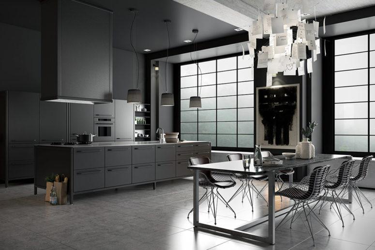 Monocromático se refiere a “un sólo color” pero aplicar al pie de la letra este concepto en el diseño de la cocina, puede ser un desastre decorativo total, incluso sería difícil distinguir el suelo de los muebles. Por eso, la tendencia monocromática se refiere ala utilización en el diseño de diferentes tonalidades de un sólo color predominante. Por ejemplo, en una cocina monocromática blanca, no tiene por qué ser todo blanco, se pueden combinar con crudos y beige que estén dentro del mismo conjunto de tonalidad, o en una cocina azul encontraremos diferentes tonos de azul combinados para crear profundidad y dimensión. Es conveniente que se utilice algún elemento que rompa visualmente la monocromía. La iluminación puede ser uno de los elementos que rompa, con un toque metalizado en cobre o en bronce, en una cocina monocromática gris. Las encimeras son otro elemento para romper la monocromía.