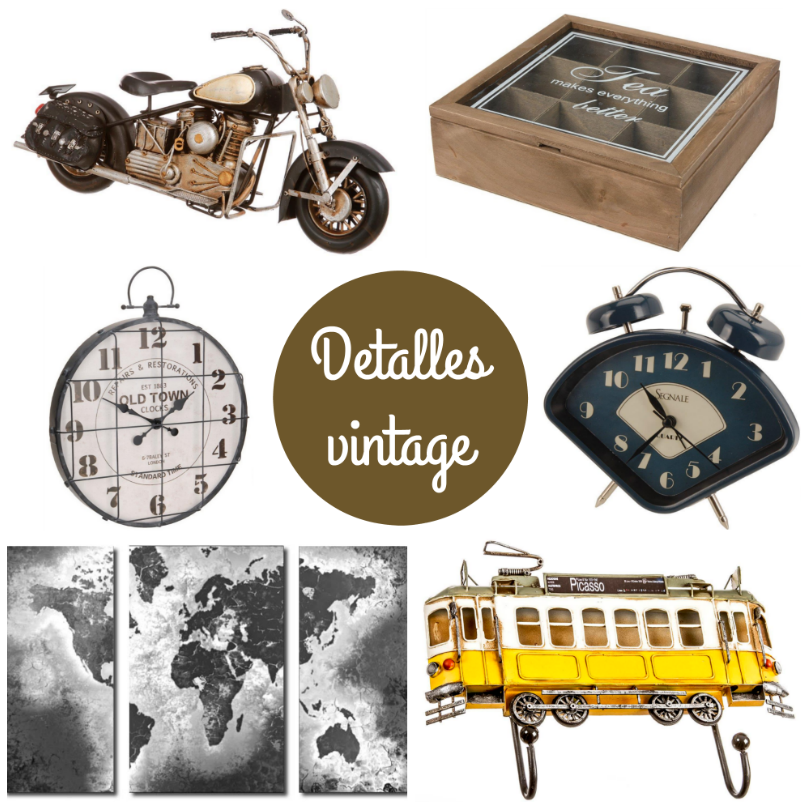 Un regalo perfecto para los más nostálgicos puede ser cualquiera de estos detalles retro, como los relojes o la moto clásica. Los mapamundi también tendrán un gran protagonismo, lo vemos en este tríptico. Para alguien a quién le guste el té, esta caja con compartimentos de madera es muy práctica.