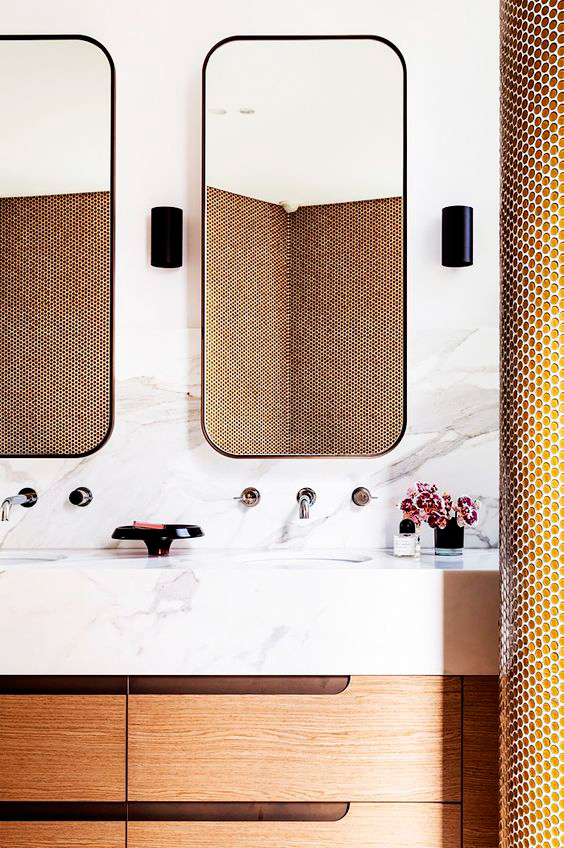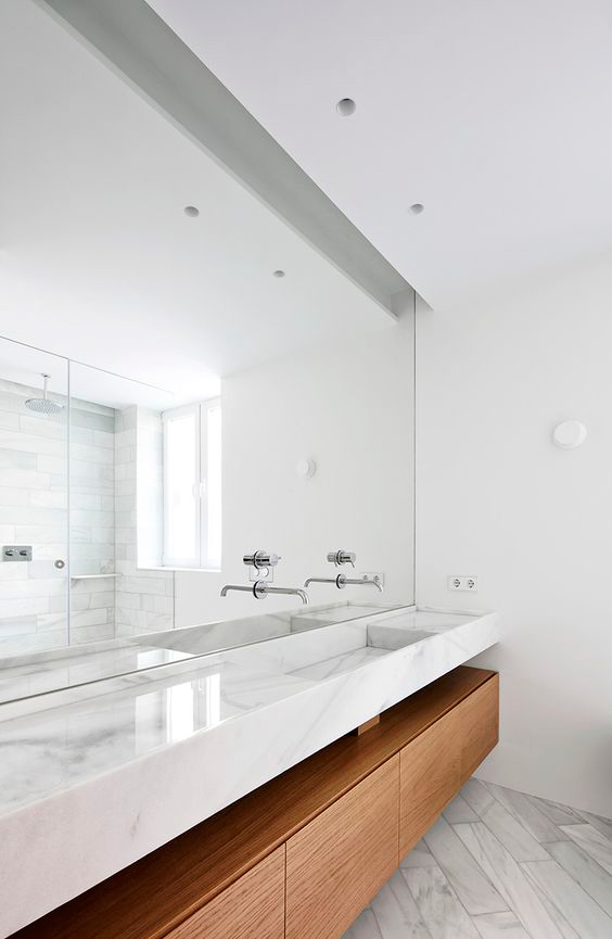 - Grifos a pared. Cual caños de fuente, tanto para cocina como para lavabos. Tendencia ésta con con un sinfín de ventajas, la más evidente, el espacio que ganas en el lavabo o fregadero, la limpieza de la encimera...