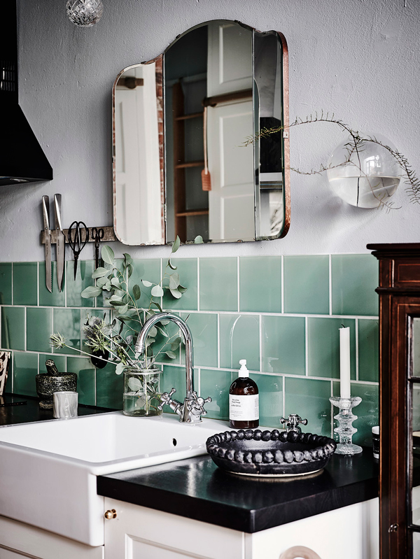 - Azulejos esmaltados. Los que tienen un acabado brillo y textura irregular como en la imagen superior en la fantástica cocina de Lauren Conrad.