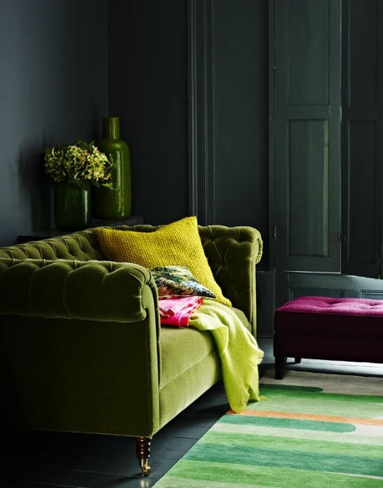 -Paredes de colores intensos. Del color gris oscuro pasamos a los azules y los verdes oscuros.