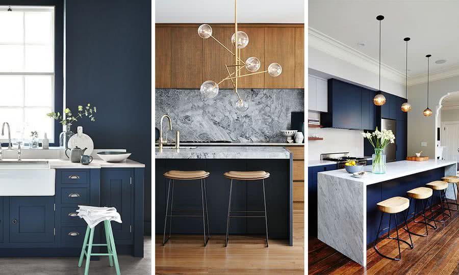 Llegan pisando fuerte las paletas de color más oscuras para la cocina, se juega con las combinaciones de gris oscuro y negro. También el binomio que nunca falla en blanco y negro. El aspecto general es de elegancia y refinamiento, con cierto aire sencillez natural. El azul marino, el verde botella y los marengos, serán algunos de los colores más utilizados en la cocina. Funcionan bien con accesorios de latón, tiradores en cuero, etc.