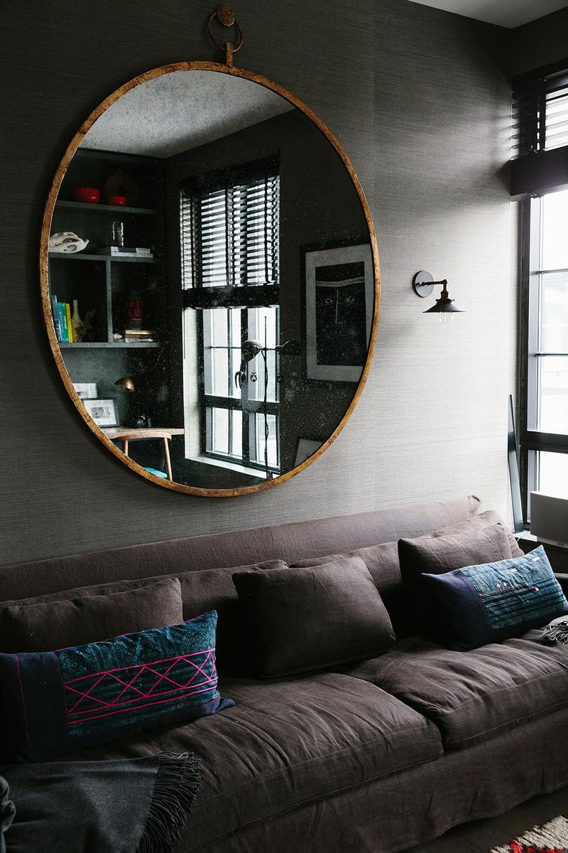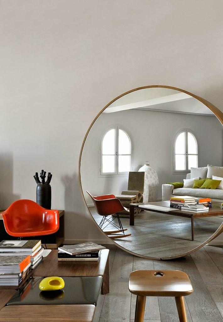 Los hay quienes los llevan al extremo. Y han pasado ya a cubrir un paramento completo con un gran espejo redondo.
