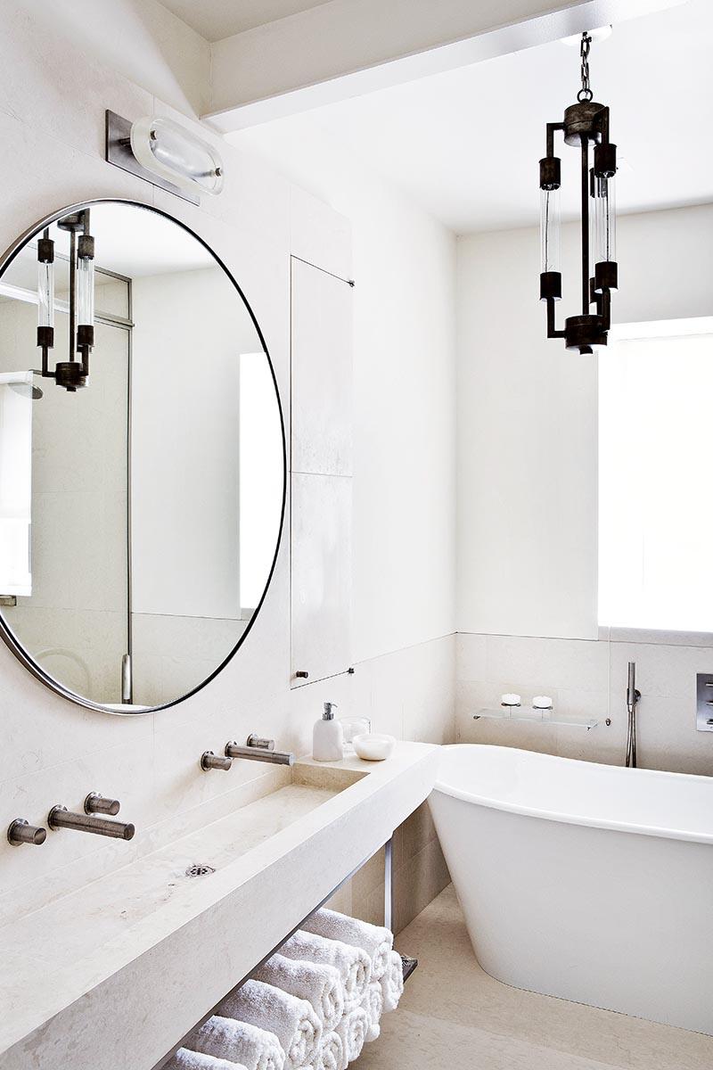 Los grandes espejos redondos quedan maravillosos en el baño, y añaden un aire vintage a cualquier revestimiento frío y moderno.