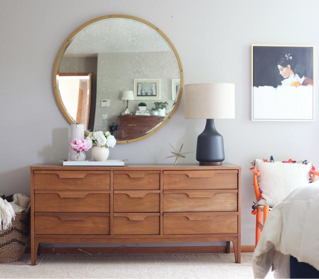 Evitando esos elementos, podemos jugar con la ubicación del espejo pasta que nos rebote luz y una composición decorativa.