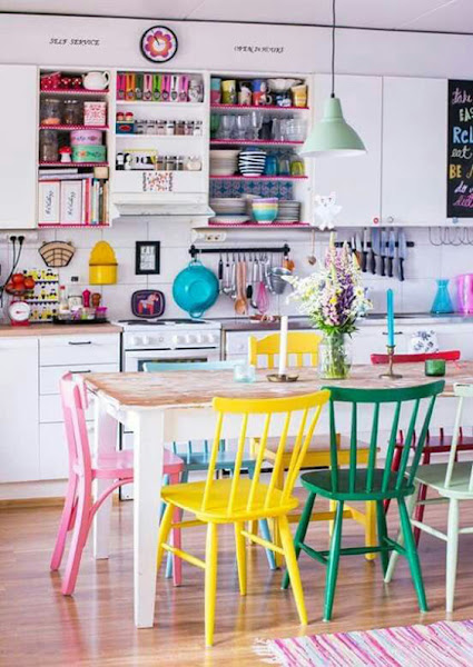 Aunque parece que habrá novedades de texturas como el terciopelo o los colores más intensos, también habrá otras llamadas a quedarse con nosotros como las sillas diferentes para una misma mesa de comedor o incluso el mismo modelo de silla de diferentes colores. ¡una tendencia que cada día me gusta más!