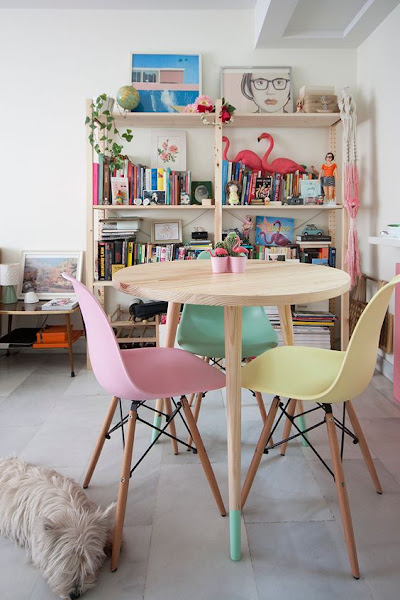 Aunque dentro de la web de SKLUM tienen un gran abanico de modelos de sillas, mesas y hasta iluminación... elegimos el modelo LIX en tonos pastel (amarillo, azul, rosa y blanco) el resultado es espectacular ¡al natural el cambio es mas notable! sillas bonitas, de calidad y en casa con envío en 24 horas.