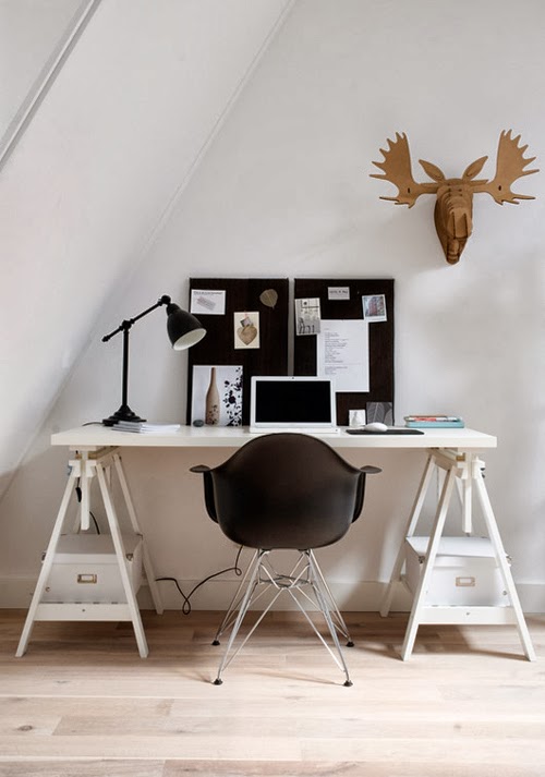 Los países nórdicos son una gran referencia en cuanto a tendencias decorativas, una de estas últimas es adornar las paredes con cuernos. Afortunadamente no pertenecen a animales disecados, sino a piezas de madera tallada imitando a cornamentas. Las puedes ver en paredes de salones, pasillos, zonas de trabajo, dormitorios..... Unas veces imitando tan solo los cuernos y otras la cabeza entera bien sea de ciervo o de otros animales.