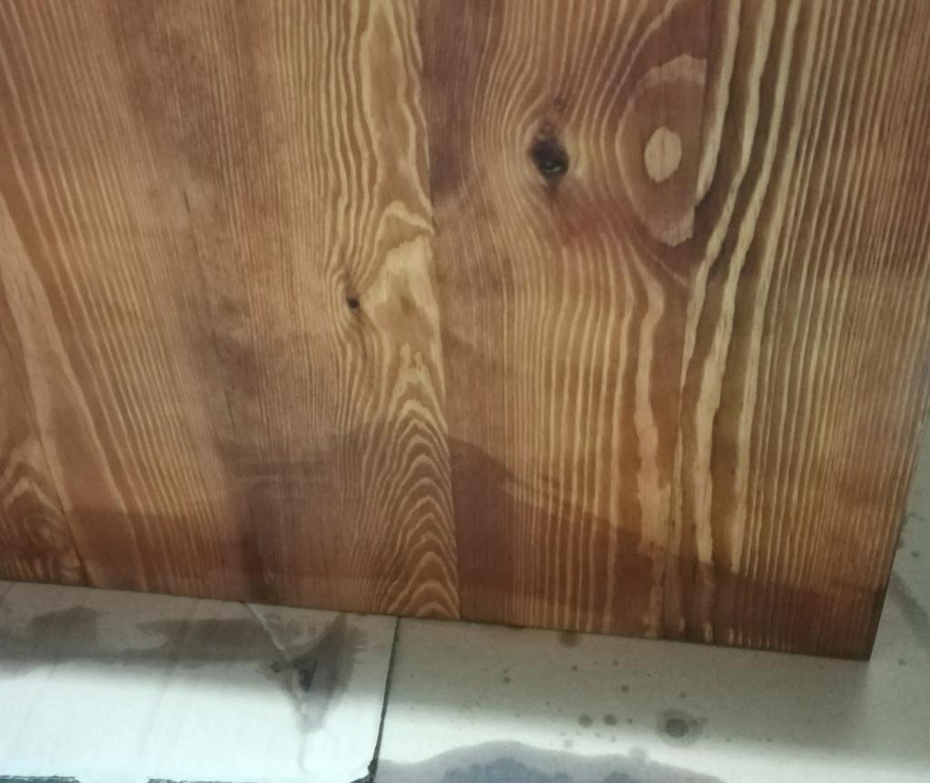 Mirad las manchas que aparecen una vez seca la madera si no pasas el paño después de cada pasada