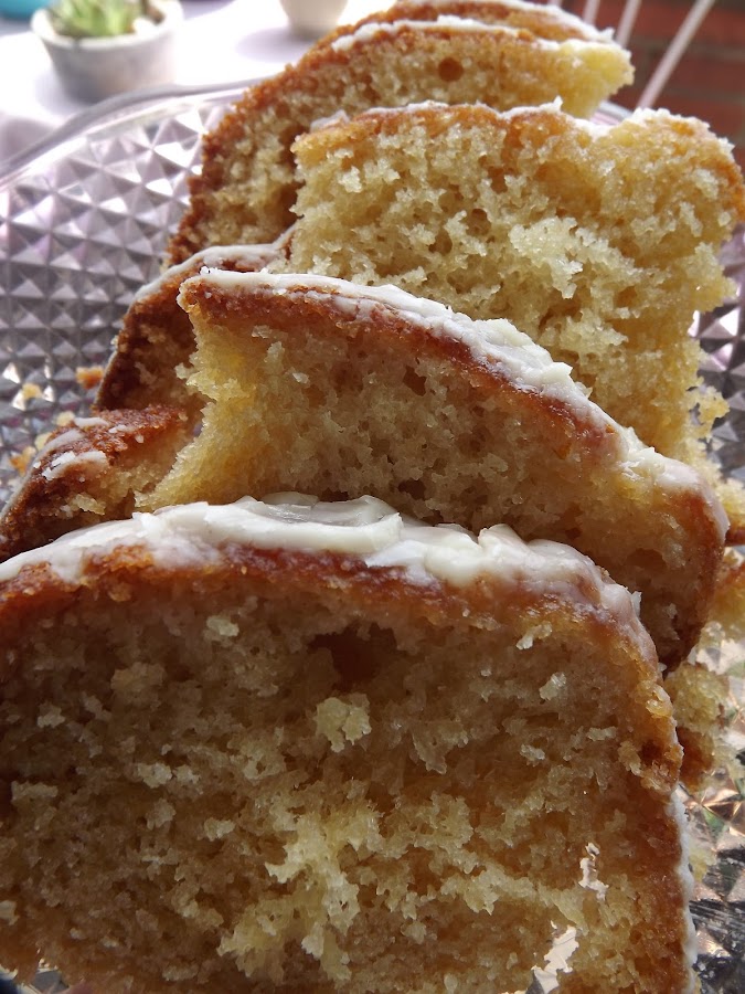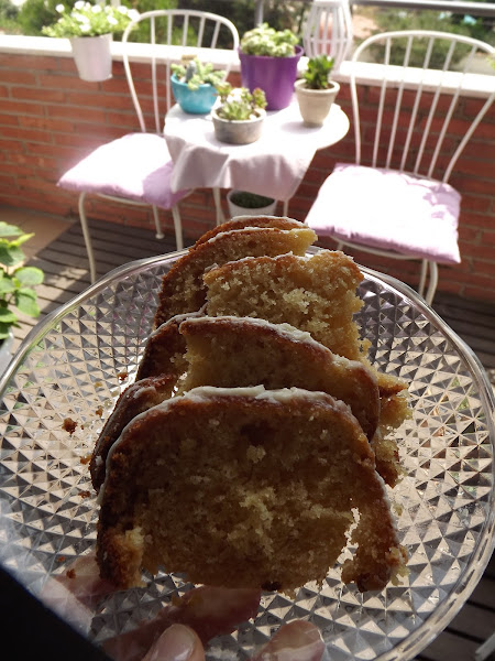 Pero guardé unos cuantos trocitos para que mis chicas pudieran verlo. Lo esponjoso de su masa, su cobertura de blanco chocolate y ese aroma que desprende avainillado y dulce...