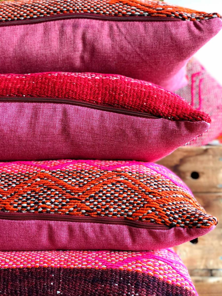 Los cojines son nuestros aliados para dar color y alegría a nuestros espacios exteriores, estas maravillas son de Alfombras Étnicas.