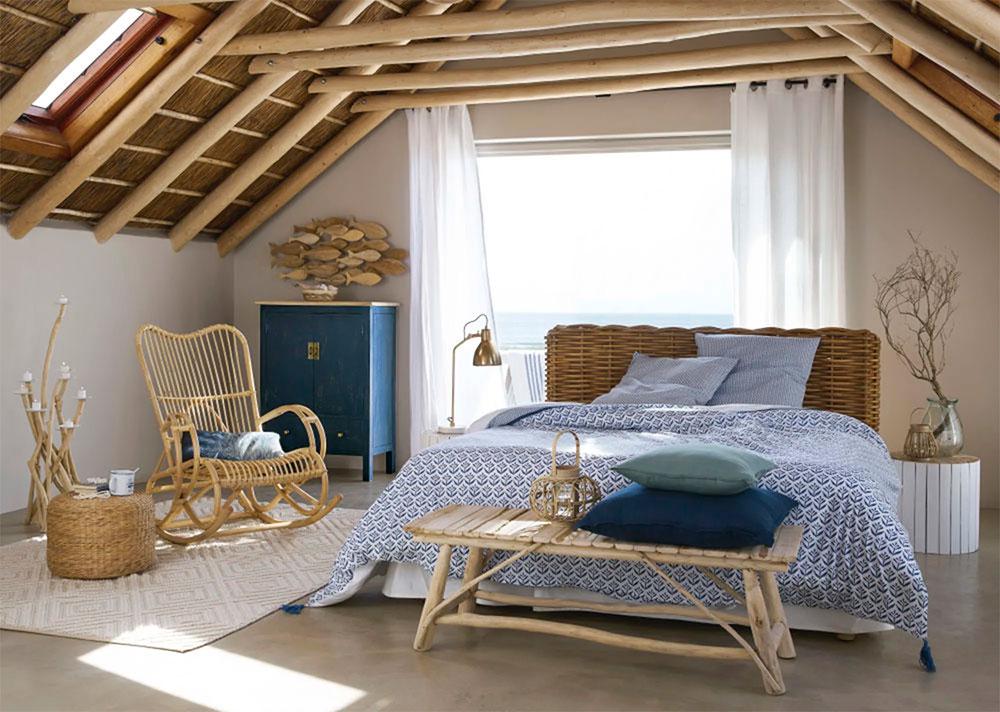 Ya sé que esto es un dormitorio, no me he vuelto loca, lo que quiero que veáis es que se pueden utilizar cosas que ya tenemos por casa simplemente reubicándolas de sitio. ¿Cómo quedaría esa mecedora de mimbre en la terraza o balcón? Le pones una mesita al lado (incluso el mismo puf que ya tiene) y ya dispones de tu espacio de ocio al exterior. ¿Y qué pongo mientras en ese hueco vacío del dormitorio? Quizás necesites una zona de trabajo alejada del bullicio de la casa, una mesa y una silla completarán el espacio a la perfección. ¿Cómo lo veis?