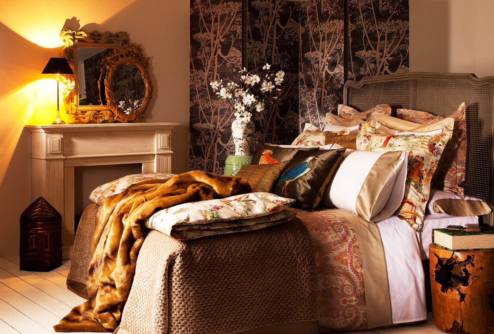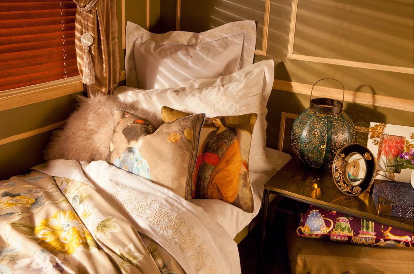 Una colección con inspiración oriental que nos viene de la mano de Zara home, repleta de colores oros, verdes y morados. Con una gran riqueza de textiles en seda adornados con estampados de pájaros, geishas y flores que nos trasladan al Lejano Oriente.